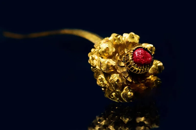 The Ji is relatively simple in shape. It is a long and thin metal with a sharp side and a blunt side. The blunt side is called the first part. The styling decoration of the Ji starts with a simple slender stick and develops to the first with a change of pattern later. The function of the hairpin gradually develops from a functional product for binding hair to a product for decoration with both functions.