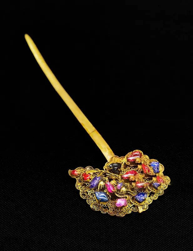 During the Ming and Qing dynasties, most Zan were inlaid with precious stones.