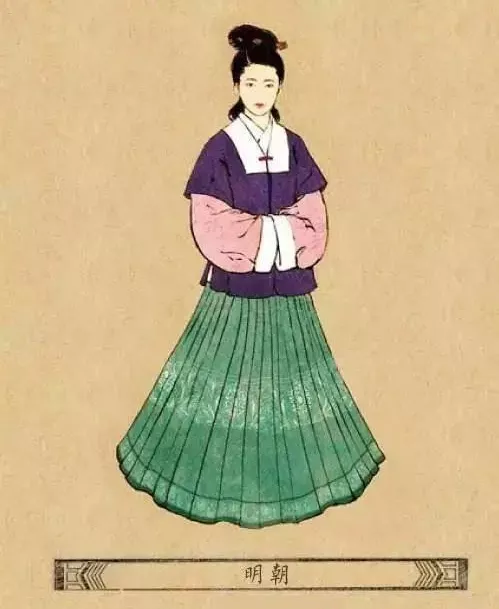 Upper skirt and lower skirt dress form, and the Tang and Song period skirt no difference.The color is still light, although ornamented, but not obvious.To chongzhen early years, skirt is plain white, even if the embroidery pattern, also only in the skirt below one, two inch parts compose with a lace, as a presser foot.At the beginning of the skirt for six, later skirt began to use eight, waist pleats dozens, the line is often like water lines.By the end of the Ming Dynasty, skirts were more and more decorated, and the number of skirts increased to ten. The pleats around the waist became more and more dense, and each pleat had a color. The color was very pure and elegant, and when the breeze blew, the color was like a moon, so it was called "moon skirt".
