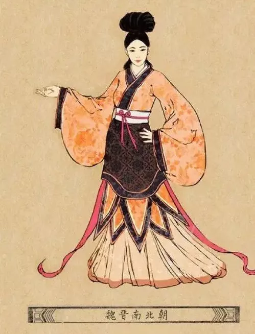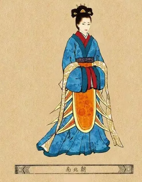 In the Southern and Northern Dynasties, it was mainly loose. Its characteristics were: opposite the lapel, girding the waist, wide sleeves, and decorated with different colors on the cuffs, lapel and hem.
